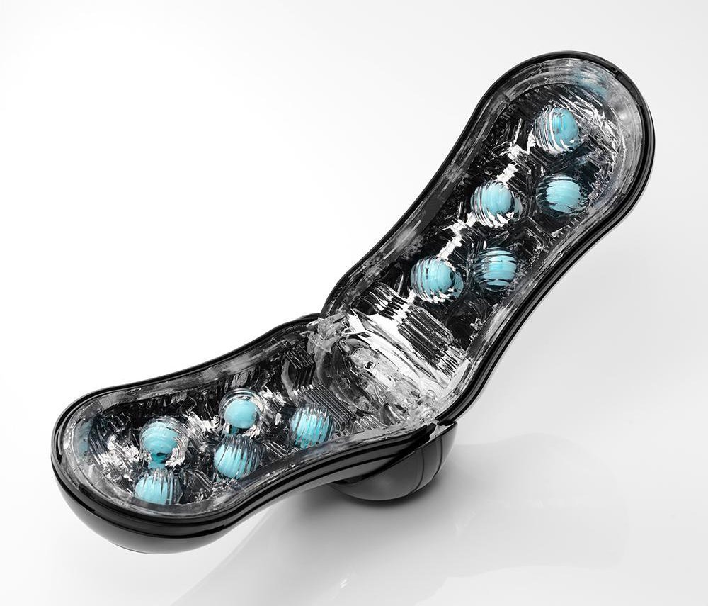 Get swept up in the rush of bounding blue orbs and angular ridges found inside the Strong Blue Rush Tenga Flip! The stimulation orbs are suspended in the softness of elastomer and provide a solid round texture for your member to rub against during use.