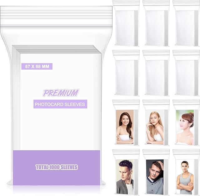 The 1000 Pcs Kpop Photocard Sleeves 2.28 x 3.5 Inch (57 x 88 mm) Clear Polypropylene Idol Photo Card Sleeves Transparent Card Protector PVC Free and Acid Free for Albums Photocards