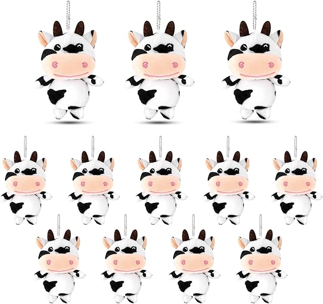 The 12 Pieces Plush Cow Keychain Stuffed Animal Toy Party Favors Kawaii Farm Animal Key Chain for Birthday Gift Supplies Easter Classroom Decoration Reward Bag Backpack Decor, 4.5 Inches