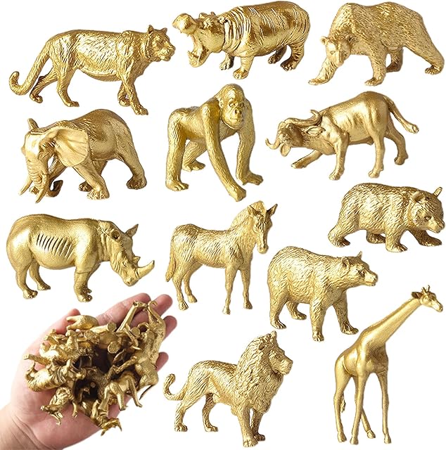 The 12Pcs Small Animals Figures, Realistic Golden Wild Animals Toys for Cupcake Toppers, Learning Educational Toys, Birthday Party Favors Gift for Kids Toddlers