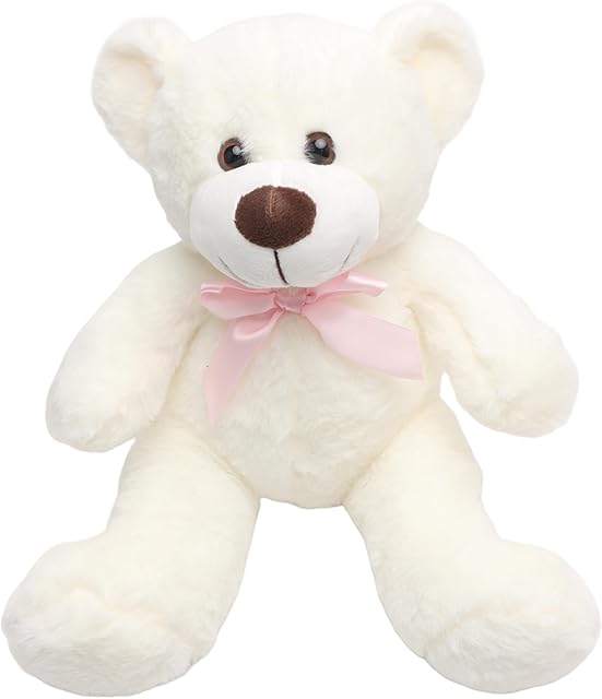 The 14″ White Teddy Bear Plush Toy, Cute Bear Stuffed Animal with Pink Bow, Soft & Huggable Plush, Birthday Valentine’s Day, Perfect for Kids Girlfriends Babies Friends
