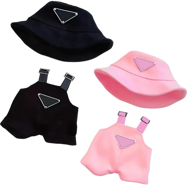 The 2 Pack Black add Pink Doll Hat and Overalls Outfit Lovely Clothes for 6.7 Inches Doll,Suitable for 15 to 17cm Dolls Dress-Up Accessories