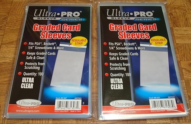 The 2 Ultra Pro Graded Card Sleeve Packs with Resealable Strip 200 Total (2 100ct Packages). Protects Graded Cards from Scratching and Dust. for Use w/Beckett, BGS, PSA and More. is now available in our store. Order your 2 Ultra Pro Graded Card Sleeve Packs with Resealable Strip 200 Total (2 100ct Packages). Protects Graded Cards from Scratching and Dust. for Use w/Beckett, BGS, PSA and More. today at a great price and enjoy free shipping!