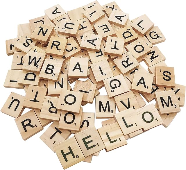 The 200 Pcs Wood Letter Tiles, Wooden Tiles for Crafts DIY Wood Gift Decoration Making Alphabet Coasters
