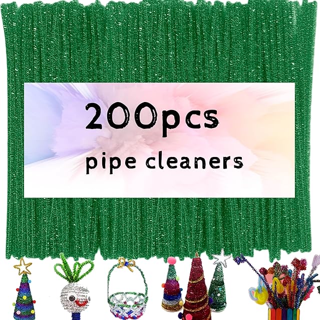The 200pcs Pipe Cleaners, Glitter Grass Green Pipe Cleaners Craft Supplies,Thick Chenille Stems Fuzzy Wire Sticks Holiday Decorations and School Supplies