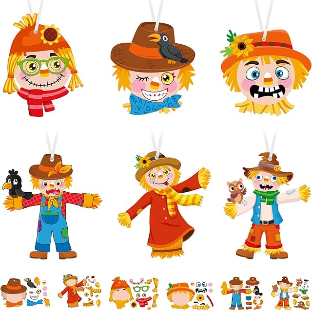 The 24 Sets Fall Crafts for Kids Scarecrow Craft Kit Bulk Thanksgiving Halloween Scarecrow Craft Stickers Make Your Own Scarecrow Ornaments for Halloween Autumn Birthday Party Supplies