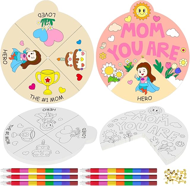 The 24 Sets Mother’s Day Coloring Craft Kit Color Your Own Mother’s Day Wheel Craft Kits Bulk Happy Mother’s Day Art and Craft for Best Mom Party Favors Gift School Kindergarten Activities Supplies