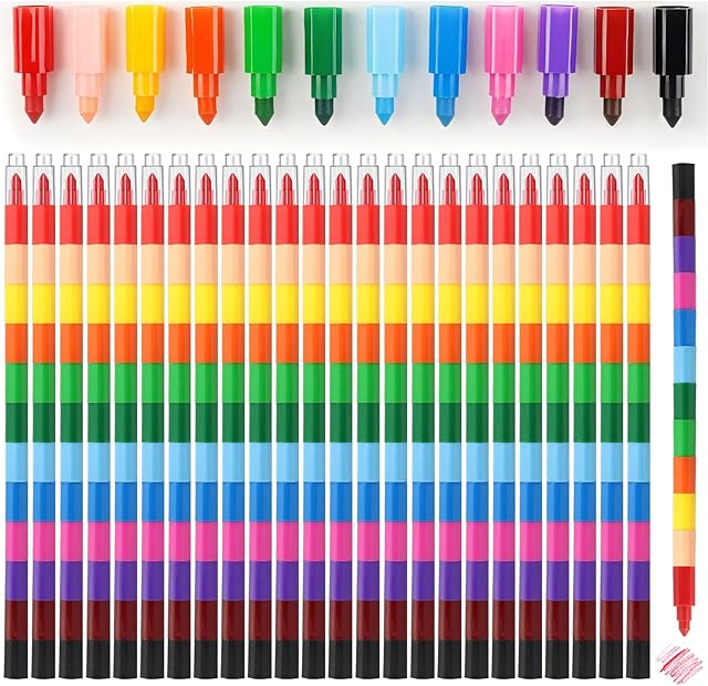 The 24Pcs Stackable Buildable Crayons, Colorful DIY Rainbow Pencils, Colored Party Bag Fillers for Kids Writing, Drawing, Coloring, Office, School, Party Supplies