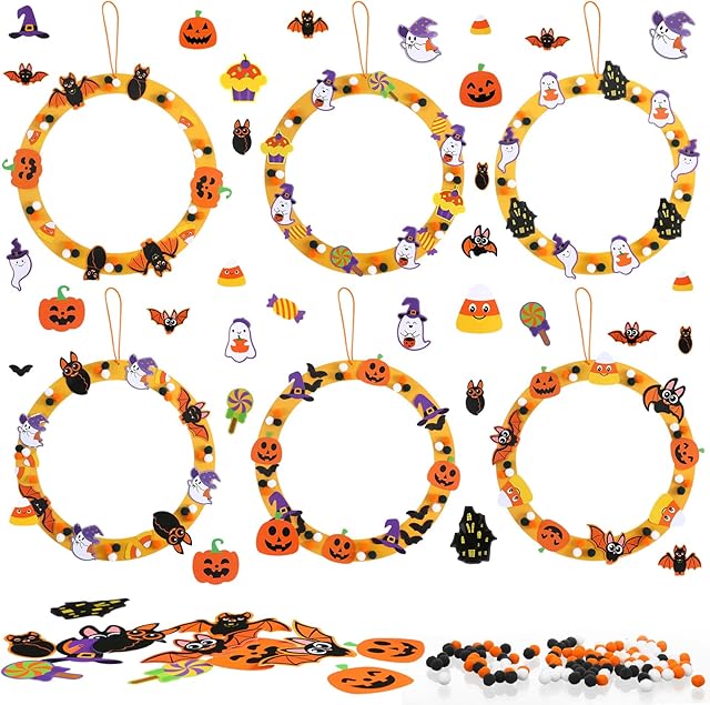 The 30 Sets Halloween Craft Kits for Kids DIY Halloween Fall Wreath Craft Decorations with Boo Pumpkin Bat Make You Own Wreath for Boys Girls Party Supplies Gift Home Classroom