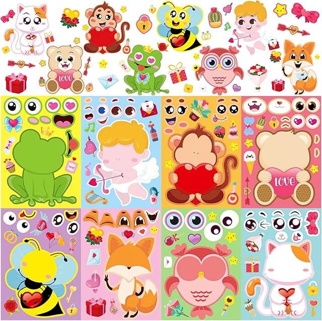 The 32 Sheet Valentines Make Your Own Stickers for Kids, Make-a-Face Sticker Heart Mix and Match Stickers Sheet Craft School Reward Valentines Birthday Christmas Games