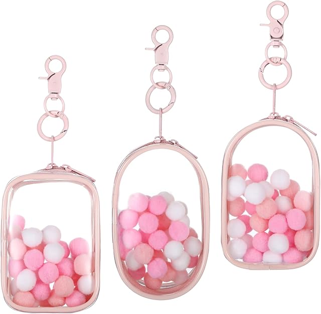 The 3Pcs Clear Figure Display Bag with Keychain, Small Clear Keychain Pouch Bag Small Mystery Box Backpack Mini Figure Display Case, Doll Carrying Case Gifts for Mini Figure Doll 3.9 * 2.3In (Pink)