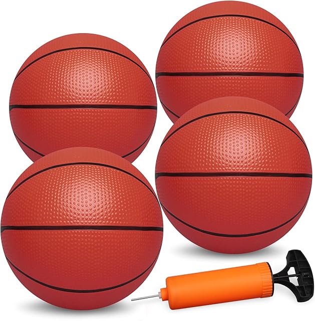 The 4 Pack 9.8’’ Basketballs for Kids Adults with Pump, Rubber Balls for Outdoor Indoor Pool, Replacement Balls for Over Door Basketball Hoop