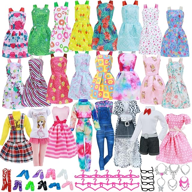 The 43Pcs Doll Clothes and Accessories Pack Including 10 Mini Dresses 3 Handmade Fashion Clothing Outfits Sets 10 Shoes 20 Cute Doll Accessories for 11.5 inch Girl Doll
