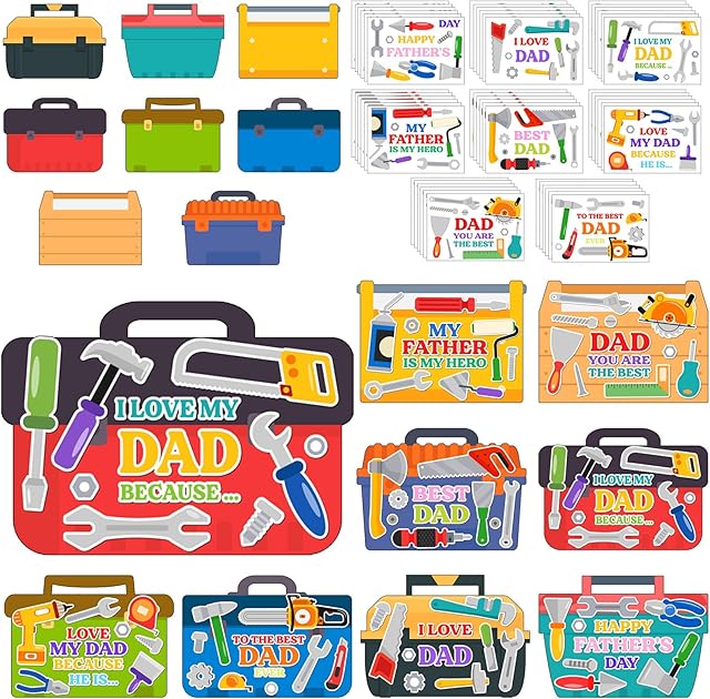 The 48 Set Father’s Day Crafts for Kids Make Your Own Tool Box Card with Stickers Father’s Day Gift Cards for Classroom Home Arts and Crafts Fun Activities Party Supplies