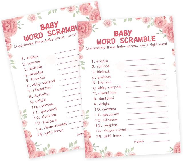 The 50 Baby Shower Games for Girl-Baby Shower Word Scramble Game,Floral Theme, Thick Cardstock, Fun and Easy to Play,Hilarious Baby Shower Games(With Answer) is now available in our store. Order your 50 Baby Shower Games for Girl-Baby Shower Word Scramble Game,Floral Theme, Thick Cardstock, Fun and Easy to Play,Hilarious Baby Shower Games(With Answer) today at a great price and enjoy free shipping!