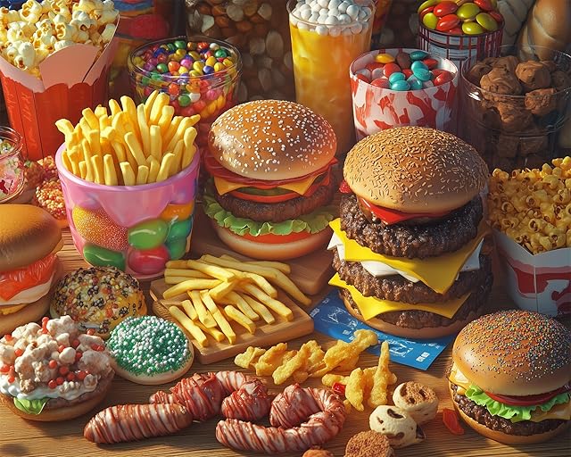 The 500 Piece Jigsaw Puzzle for Adults – Colorful Food Carnival with Burgers, Fries & Sweets – 20″x16″ Thick White Cardboard Puzzle – Fun Game, Gift & Kitchen Wall Décor