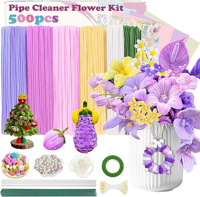 The 500Pcs Pipe Cleaners Craft – All-in-One DIY Flower Making Kit with 5 Colors Chenille Stems, Floral Stem Wires, Floral Tape, Stamens, Ribbon, Pearl & Pom Pom Accents, Bouquet Wrapping Paper (Purple) is now available in our store. Order your 500Pcs Pipe Cleaners Craft – All-in-One DIY Flower Making Kit with 5 Colors Chenille Stems, Floral Stem Wires, Floral Tape, Stamens, Ribbon, Pearl & Pom Pom Accents, Bouquet Wrapping Paper (Purple) today at a great price and enjoy free shipping!