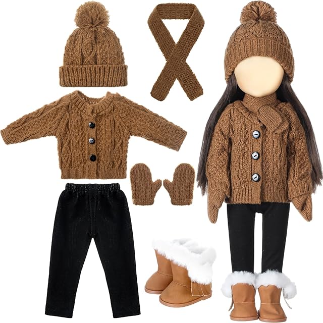 The 6 pcs Christmas 18 Inch Doll Clothes and Accessories Winter Outfits Set with Sweaters Trousers Hats Shoes Gloves Scarfs for 18 Inch Doll (Brown)