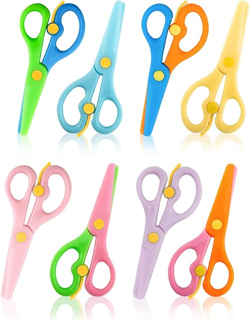The 8 Pack Plastic Safety Scissors, Preschool Training Scissors, Children Safety Learning Scissor Spring Scissor for Toddler Arts and Paper Craft Supplies