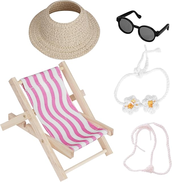 The Accessories Set for 15/ 17cm Doll,Miniature Beach Sun Hat/Sunglasses/Wooden Folding Beach Chairs for Dolls Accessories(No Doll Included)