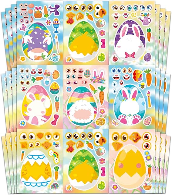 The Aowplc 32 Sheets Easter Make A Face Animal Stickers Mix and Match Easter Crafts for Kids Party Favors Supplies