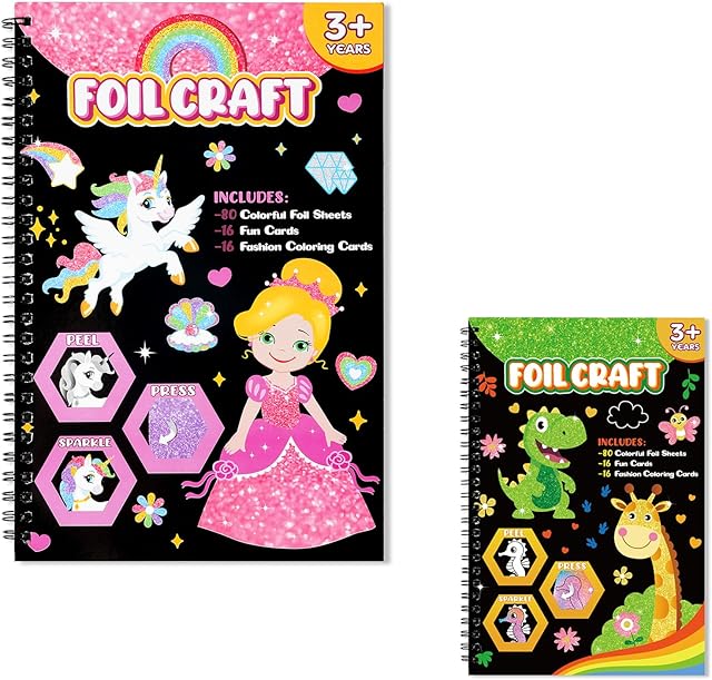 The Art & Craft Activity,Foil Art Princess and Animals DIY Art Kits,No Mess Creative Foil Art Kits Set Drawing Game for Kids