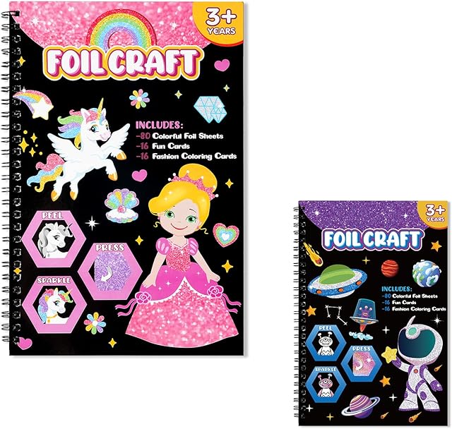 The Art & Craft Activity,Foil Art Princess and Outer Space DIY Art Kits,No Mess Creative Foil Art Kits Set Drawing Game for Kids