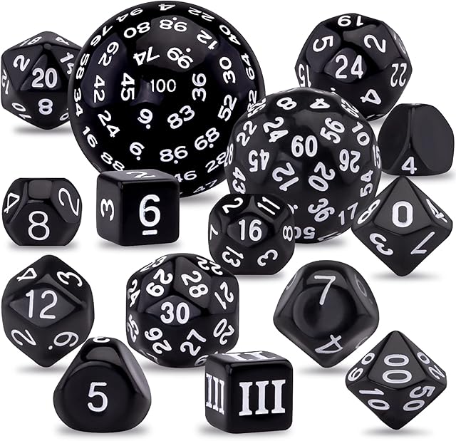 The AUSTOR 15 Pieces Complete Polyhedral Dice Set D3-D100 Game Dice Set with a Leather Drawstring Storage Bag for Role Playing Table Games(Black & White) is now available in our store. Order your AUSTOR 15 Pieces Complete Polyhedral Dice Set D3-D100 Game Dice Set with a Leather Drawstring Storage Bag for Role Playing Table Games(Black & White) today at a great price and enjoy free shipping!