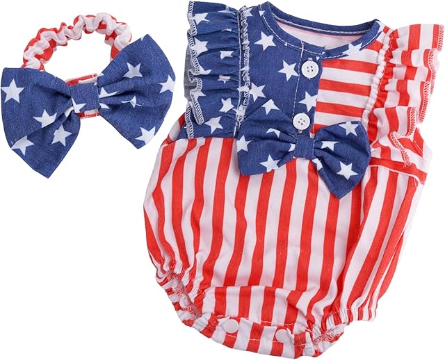 The BABESIDE 2 Pcs Reborn Baby Doll Clothes Set for 17-22 Inch Babydolls, Baby Doll Accessories with Headband for Realistic Dolls Clothing, Stars and Stripes