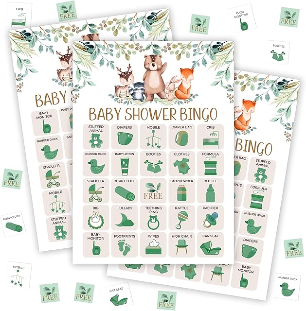 The Baby Shower Bingo Game for Adults, Baby Shower Party Bingo Game Set, Woodland Games Cards, Gender Reveal Favors for Family Friends, Large Group Games Decor & Supplies -22
