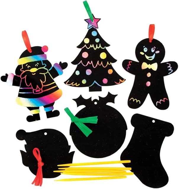 The Baker Ross FC200 Christmas Scratch Art Decorations – Pack of 12, Xmas Scratch Arts and Crafts for Kids, Children’s Craft Kits to Create and Craft Gifts for Family