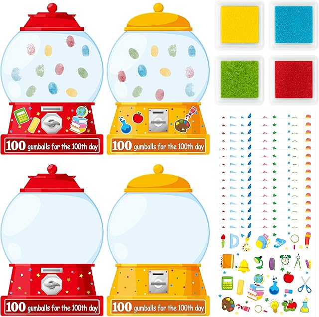 The BeYumi Gumball Machine Sticker Craft – 28Pcs 100 Days of School Gumball Machine Craft Kit for Kids 100 Fingerprints for 100 Days Finger Print Art Set 100th Day of School Party Classroom Activities