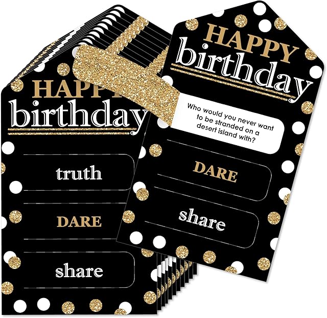 The Big Dot of Happiness Adult Happy Birthday – Gold – Birthday Party Game Pickle Cards – Truth, Dare, Share Pull Tabs – Set of 12