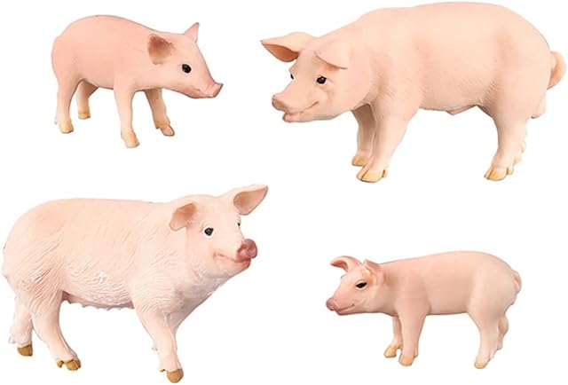 The BLAPNK 4 Pcs Realistic Farm Pig Animals Model Figure Toy Set, Barn Farm Pig Family Figurines Collection Playset Preschool Science Educational Learn Cognitive Props