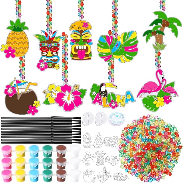 The Blosssound 36 Sets Summer Suncatcher Craft Kit Hawaii Aloha Summer Window Art Suncatchers Tropical DIY Window Paint Art Kit Make Your Own Painting Ornaments for Classroom Home Craft Party Activities
