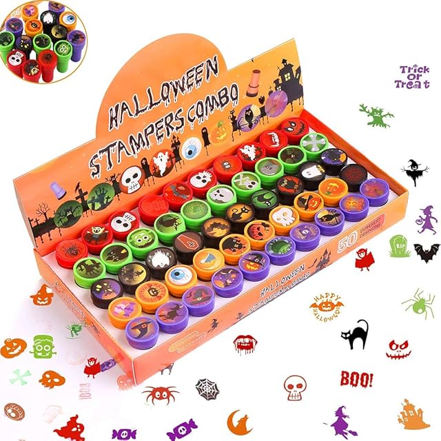 The CCINEE 50pcs Halloween Assorted Stamps Cute Cartoon Stamps for Kids’ Halloween Party Favors Trick or Treat Goodies Bags Filler