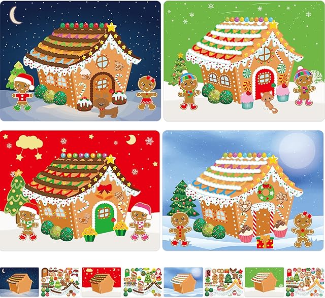 The ceiba tree Make A Gingerbread House Stickers for Kids Christmas Craft Kit for Xmas Party Game Decorating Activity Holiday DIY Supplies 12 Sets