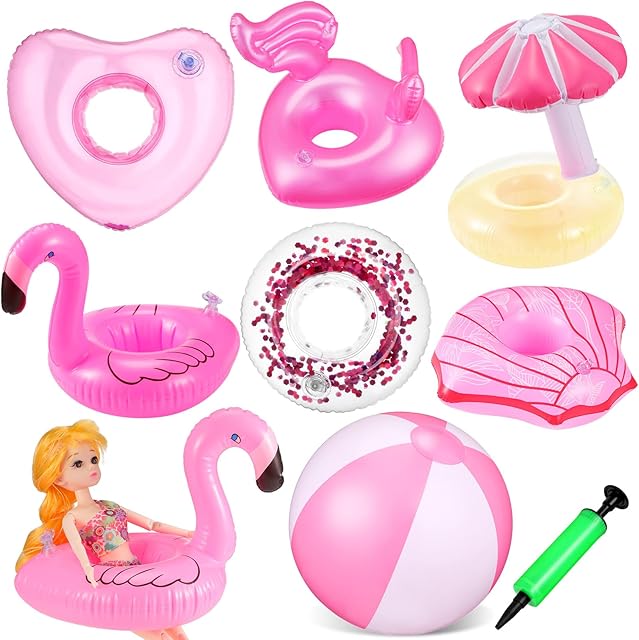 The CHENGU 6 Pcs Pool Floaties for Girl Dolls Swim Accessories Set Swimming Pool Floaties Party Ring Girl Dolls Cup Coasters Dolls Pool Toys Doll Pool for 11.5″ Dolls Girl Swimming Pool