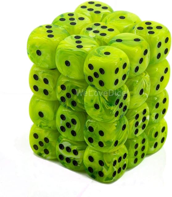The Chessex Dice d6 Sets: Vortex Bright Green with Black – 12mm Six Sided Die (36) Block of Dice