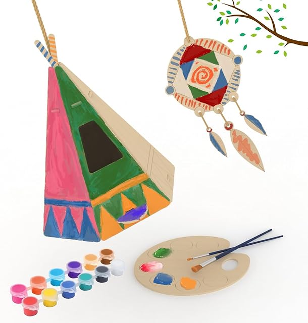 The Chirpy – DIY Wooden Birdhouse Painting Kit for Kids – 8″ – Non-toxic Paints, Brushes, Palette, Dream Catcher – Bird House Feeder Coloring Set – Art & Craft Project, Educational Toy, Nature Activity