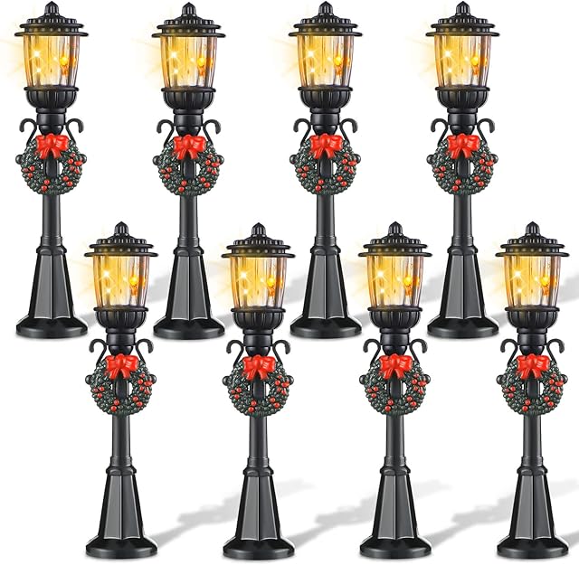 The Christmas Lamp Post Village Accessories Village Fairy Lamp Train Lantern Lamp Miniature Street Lamp Decorative Street Lights for DIY Dollhouse Village Pathway (Fresh Style, 8 Pieces)