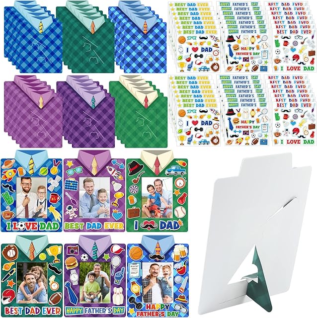 The Chunful 72 Pieces Father’s Day Picture Frame Crafts Kits, 36 Standing Paper Picture Frames and 36 Fathers Day Stickers DIY Paper Photo Frames for Kids Boys Girls Happy Father’s Day Party Decorations