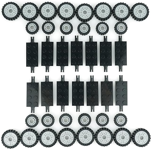 The City Car Wheels Tires Axles Kits Set, 70pcs Vehicle Truck Parts Classic Pieces Accessories, Bulk Bricks Sets Construction Toys