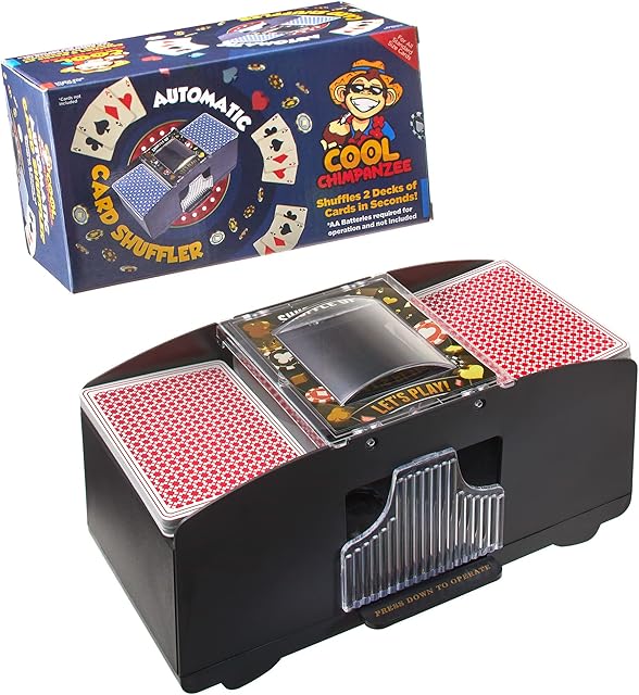 The Cool Chimpanzee Automatic 2-Deck Card Shuffler, Home Poker Games, Blackjack, Rummy, War, Texas Hold ‘Em, PLO, Omaha, Stud and More