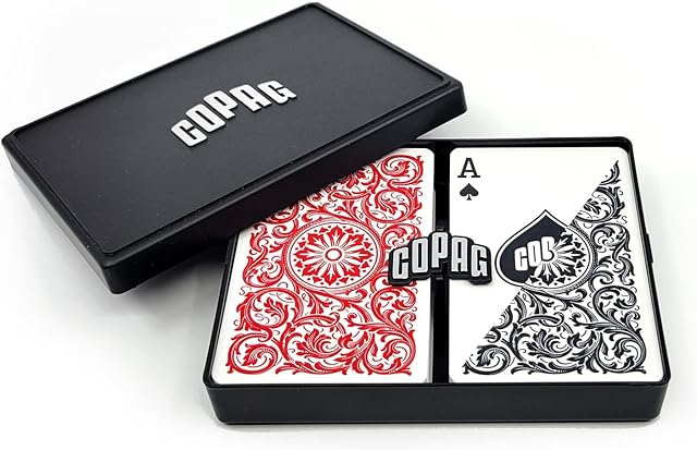 The Copag 1546 Design 100% Plastic Playing Cards, Bridge Size (Narrow) Red/Black Double Deck Set (Regular Index)