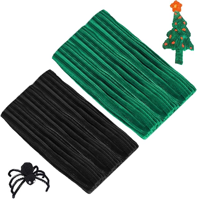 The Cuttte 100pcs Black Pipe Cleaners Craft Supplies and 100pcs Dark Green Pipe Cleaners, Craft Kids DIY Art Supplies