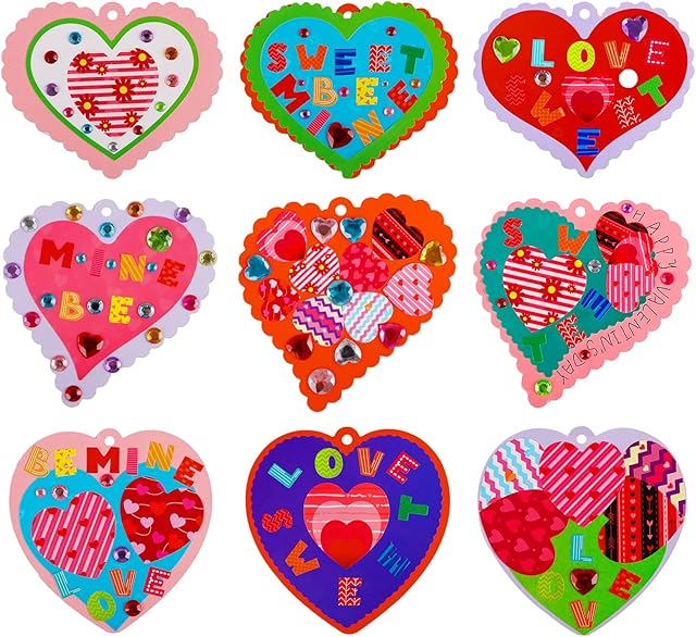The D4DREAM Valentines Day Heart Stickers Craft Kit for Kids 24pcs DIY Heart Ornaments Heart Valentine Craft Kits for Wedding Adults Kids Valentine Gift Exchange Classroom Activity Art Project