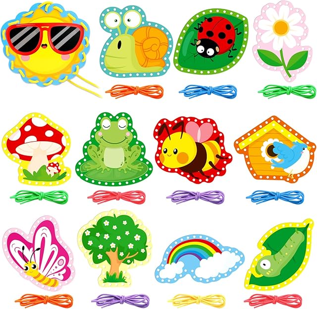 The Dapaqami Springtime Lacing Cards 12 Packs Sewing Kits Rainbow Flower Butterfly Cardboard Sewing Cards Lacing Games for Developing Imagination School Learning Activity Supplies Spring Decorations