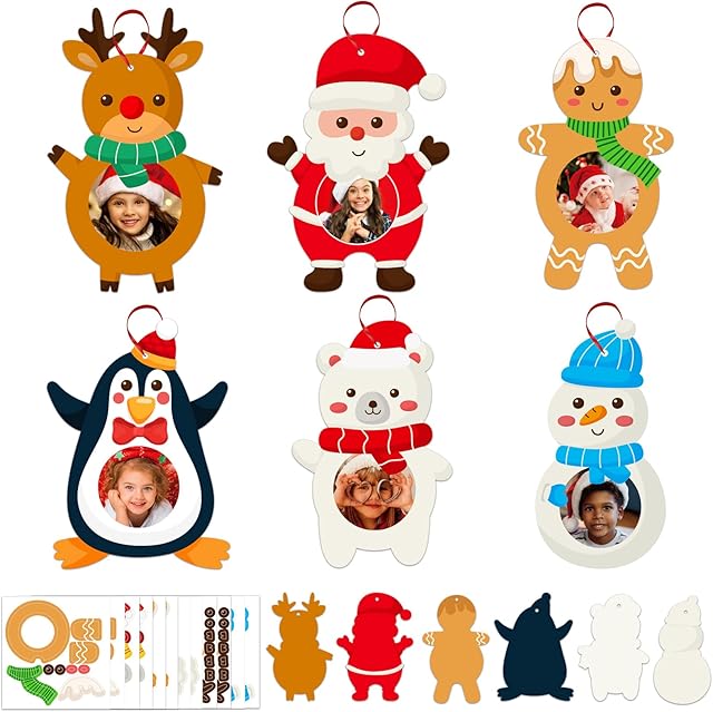 The FaCraft Christmas Crafts for Kids 24 Sets Christmas Frame Ornaments Christmas Photo Frame Ornaments for Tree Decoration DIY Christmas Crafts Kits for Kids Classroom Activities Christmas Party Favors