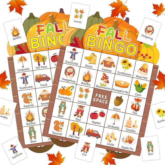 The Fall Bingo Card for Kids Adults 24 Players Autumn Thanksgiving Cards Game Set Pumpkin Harvest Party Game Supplies Favors for Family School Classroom Activities Fall Thanksgiving Bingo Cards